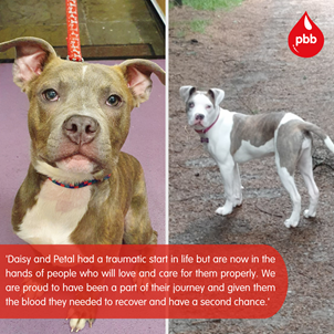 Daisy and Petal had a traumatic start in life but are now in the hands of people who will love and care for them properly. We are proud to have been a part of their journey and given them the blood they needed to recover and have a second chance.