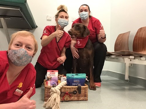 Angela said, ‘When I first saw Pet Blood Bank on Facebook, I knew straight away Yogi would be a fab donor and signed him up. He took to it straight away and was always happy and relaxed. He just loves people who make a fuss of him and when we would arrive at the Dick Vets he knew why he was there: to eat biscuits and get clapped! And then there was a toy to take home too. I am very proud of what he has achieved and think he is a great ambassador for both the Dobermann breed and Pet Blood Bank. I couldn’t be a prouder donor mum.’