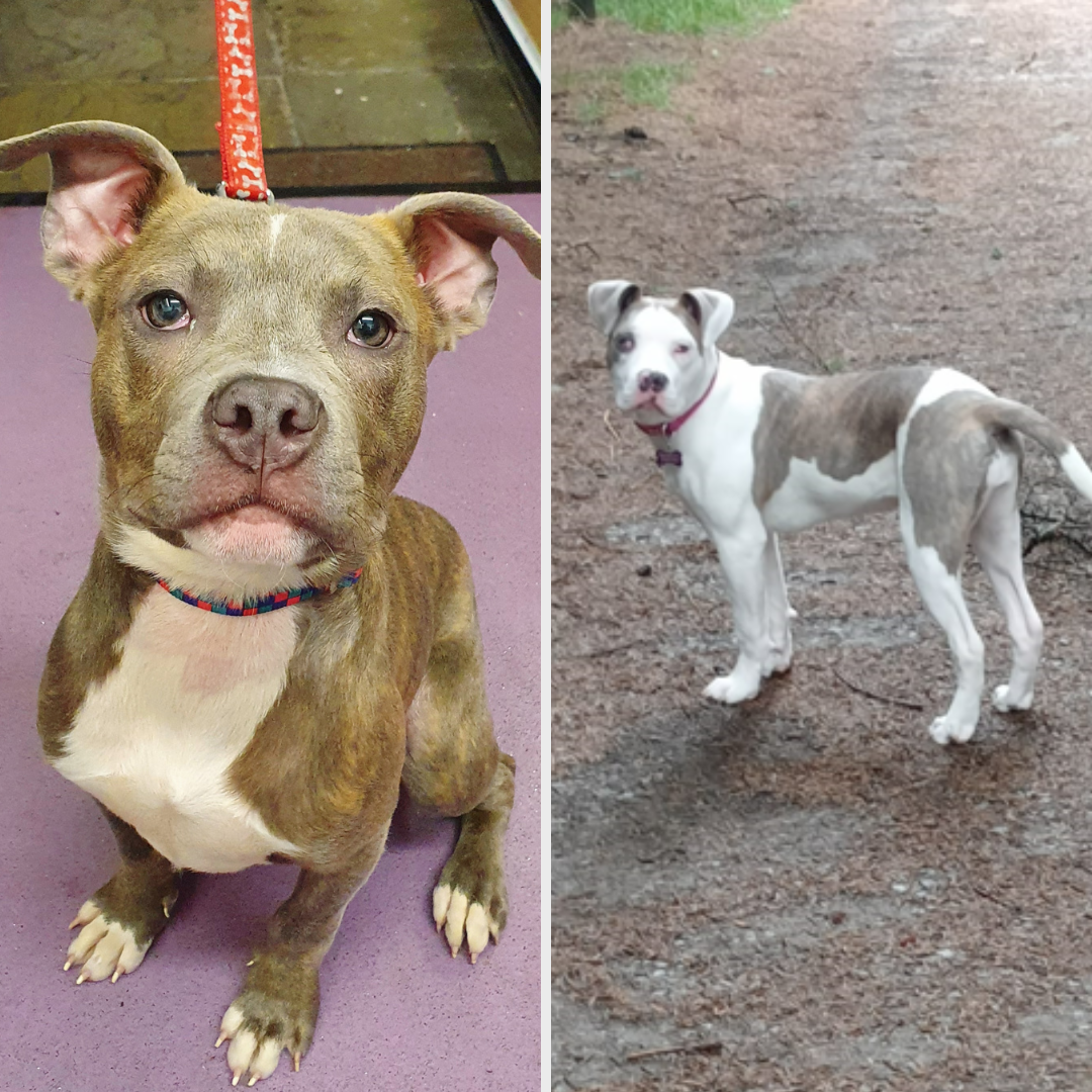 Daisy and Petal are two beautiful Staffordshire Bull Terrier cross dogs who experienced a heartbreaking start to their lives.